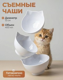 Набор мисок для собак и кошек с приподнятой подставкой включает 3 миски и подставку. Изготовлен из пищевого пластика - безопасно и удобно для ежедневного кормления.