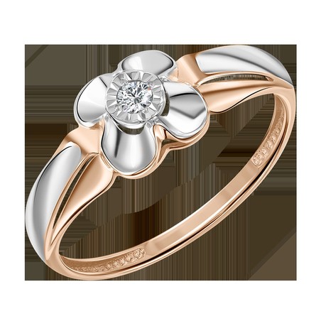 Очаровательное кольцо в форме цветка из красного золота 585 пробы, с центральным бриллиантом весом ≈ 0,046 ct. HSI.