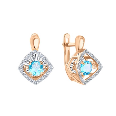 Wunderbarer Ohrhänger, Russisches Rotgold 585, mit Topas und Zirkonia, Durchmesser Stein ca. 5-6 mm, Größe Kaste ca. 12*12 mm, Höhe ca. 5-8 mm