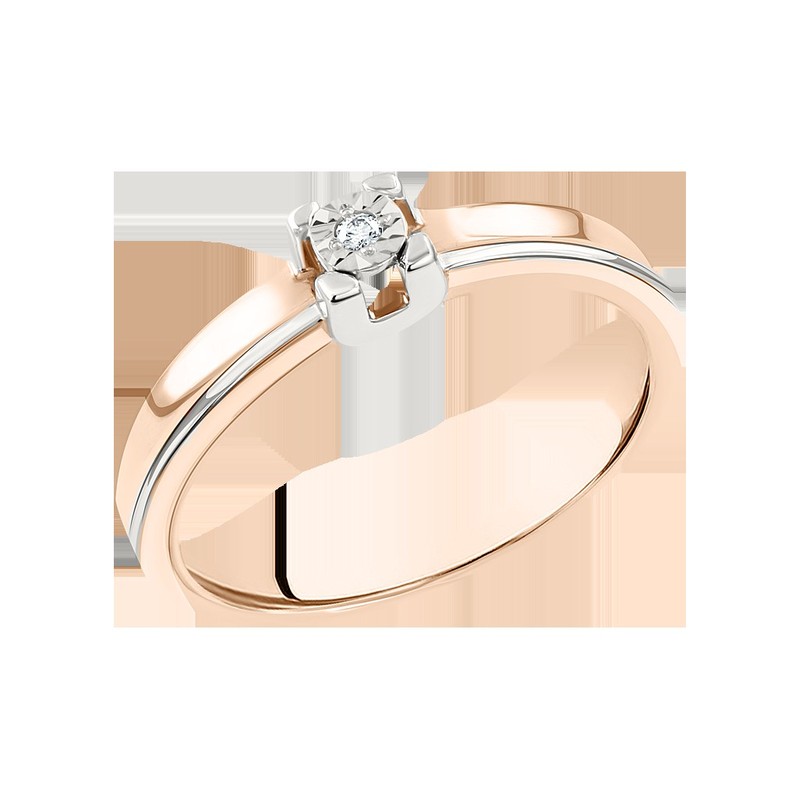 Очаровательное женское кольцо из русского красного золота 585 пробы, инкрустированное 1 бриллиантом - весом 0,015 ct. GSI.