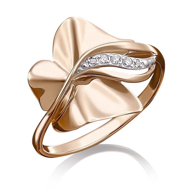 Изящное кольцо, вдохновлённое природными формами. Плавные лепестки, выполненные из красного золота 585 пробы, образуют изысканный цветок, акцент которого — линия сияющих фианитов. Камни подчёркивают движение и мягкий блеск металла, придавая кольцу лёгкость и утончённость.