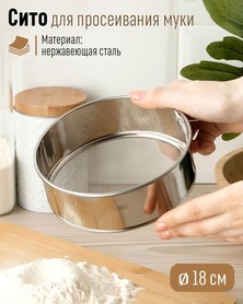 Сито диаметром 18 см - это незаменимый атрибут для любителей кулинарии и профессиональных поваров. Имеет специальную конструкцию, с помощью которой вы сможете равномерно просеивать сухие продукты, позволяет быстро и эффективно убрать крупные комки из продуктов, таких как мука, сахар, крахмал и другие. Благодаря этому, вы сможете достигать идеальных результатов в любой кулинарной задаче