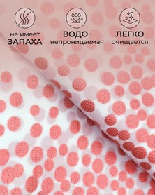 Скатерть: размер 137x274 см, выполнена в белом цвете с изысканным розовым декором в виде мелких точек, придающим столу утончённый вид.