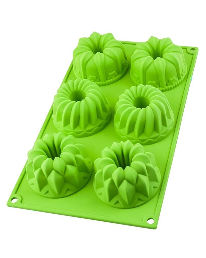Силиконовая форма для выпечки на 6 ячеек в виде красивых фигурных отверстий с рельефным дизайном. Она проста в использовании, идеально подходит для приготовления порционных кексов, маффинов, пудингов, желе или мини-куличей.