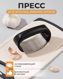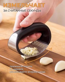 Пресс для чеснока, используется для быстрого и удобного измельчения зубчиков чеснока. Он имеет эргономичную ручку и металлическую часть с отверстиями, через которые чеснок протирается, превращаясь в мелкие кусочки или пасту.