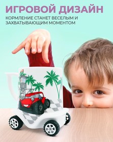 Яркая чашка в форме машинки на колесиках станет любимым "гоночным аксессуаром" вашего малыша.
