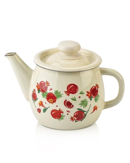 Эмалированный заварник 1 л молочного цвета с деколью «Гранат» — это стильная и практичная посуда из прочной эмали, идеально подходящая для заваривания и подачи чая, травяных настоев и напитков, которая сочетает уют, долговечность и декоративную эстетику к