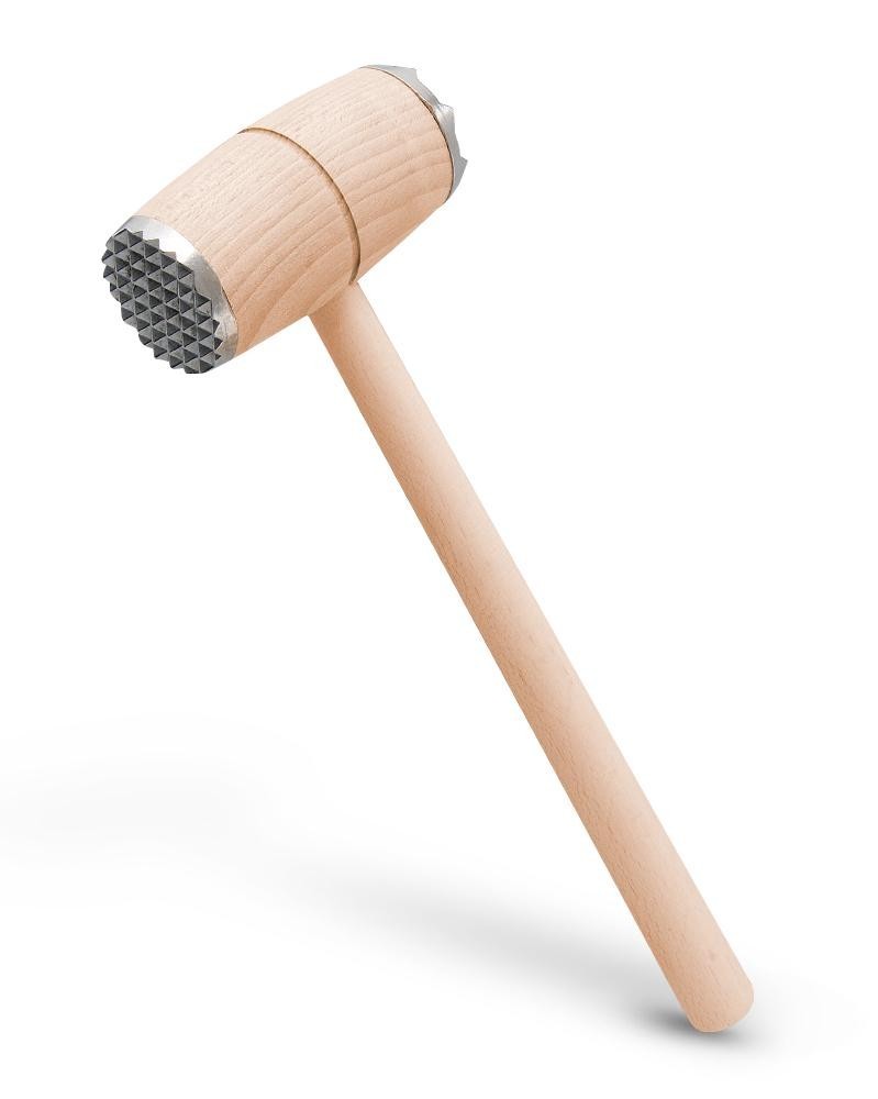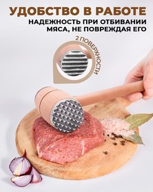 Деревянная ручка молотка обладает отличной эргономикой, что делает его удобным для работы, а алюминиевые наконечники обеспечивают надежность при отбивании мяса, не повреждая его. Такой инструмент прекрасно подходит для подготовки мяса, птицы и других продуктов, требующих легкого и аккуратного отбивания.