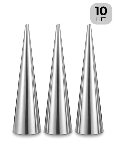 Набор из 10 форм для выпечки рожков из прочной нержавеющей стали. Идеально подходит для приготовления хрустящих рожков, круассанов и десертов. Лёгкие, долговечные и удобные в использовании.