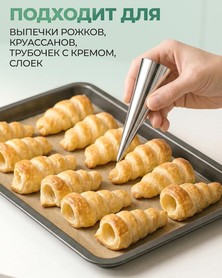 Подходят для выпечки рожков, круассанов, трубочек с кремом, слоек и десертов.