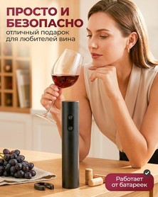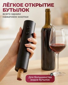 Электрический штопор высотой 22.5 см работает от 4 батареек AA (не входят в комплект) и открывает бутылки одним нажатием кнопки. Удобный, стильный и идеально подходит для дома и подарков.