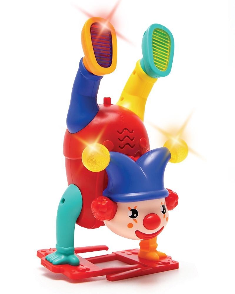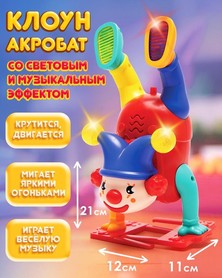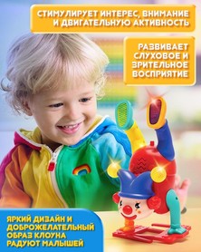 Зажигательный клоун-акробат точно не даст скучать! Он крутится, двигается, мигает яркими огоньками и играет весёлую музыку, превращая любую игру в настоящее цирковое представление!