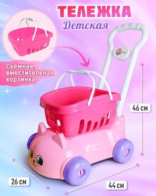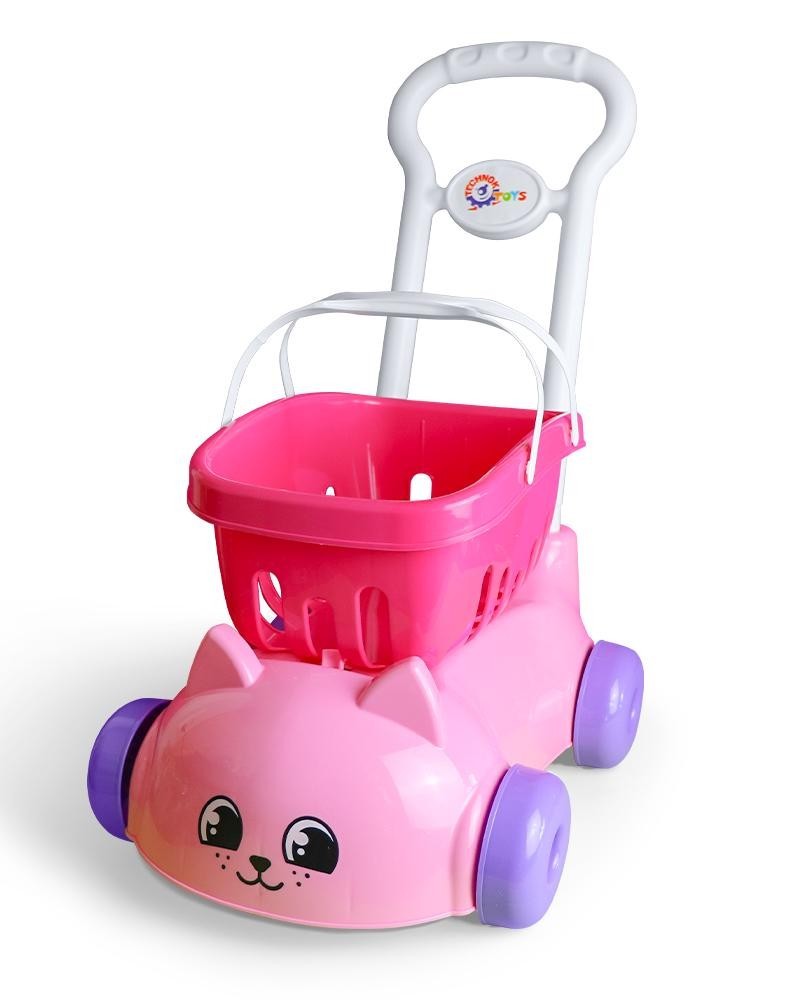 Тележка оснащена удобной ручкой и устойчивыми колёсами, поэтому её легко катать как дома, так и на улице. Во время игры дети развивают координацию, ловкость и воображение, играя в «магазин», «поход» или «прогулку». Съёмная корзинка делает процесс ещё интереснее - можно перевозить игрушки, фрукты, посуду и даже любимых кукол.