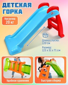 Горка идеально подходит для детей от 2 лет и выдерживает нагрузку до 20 кг. Удобные ступеньки с матовой поверхностью предотвращают скольжение, а сплошные поручни обеспечивают уверенный захват при подъеме. Компактные размеры конструкции позволяют легко установить её в доме, на даче или в детском саду, создавая уютное и безопасное пространство для игр.