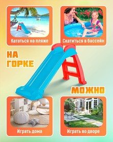 Лёгкая и прочная пластиковая горка с безопасной для детей поверхностью. Простая сборка и компактные размеры, подходит для дома и улицы. Помогает малышам играть и развивать уверенность в движениях.