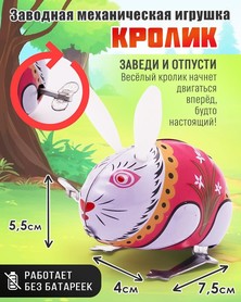 Заводная игрушка «Кролик» – яркая механическая игрушка без батареек. Развивает внимание, моторику и воображение детей от 3 лет.
