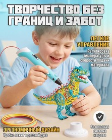 Безопасная система нагрева и экологичный материал делают работу с ручкой комфортной и безопасной. Управление интуитивно понятное: несколько кнопок регулируют температуру и подачу материала, что позволяет ребенку быстро освоить работу с устройством. 3D-ручка развивает моторику, пространственное мышление и творческие способности, превращая игру в полезный обучающий процесс.