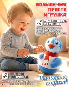 Контрастные цвета помогают развивать зрительное восприятие и концентрацию внимания. Неваляшка «Пингвин» станет отличным подарком и особенно подойдёт для зимних и новогодних праздников.