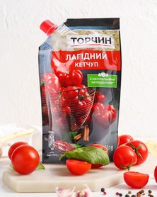 Кетчуп Торчин «Нежный» с обновлённой рецептурой отличается воздушной текстурой и насыщенным томатным вкусом с мягкими нотами специй. Идеально подходит к гарнирам, мясу и горячим бутербродам.