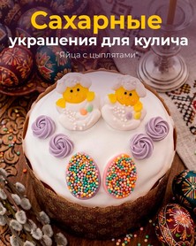 Сахарные украшения для кулича "Яйца с цыплятами" от ТМ «Добрик» - это замечательный набор для создания яркого и праздничного декора на пасхальной выпечке. В наборе содержатся: