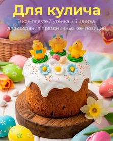 В комплекте: 3 забавных утенка и 3 красивых цветка. Такой набор позволяет создавать разные композиции и подчёркивать весеннюю тематику десертов. Сахарные утята станут очаровательным акцентом на праздничном столе и порадуют как детей, так и взрослых.