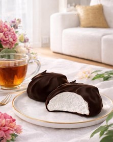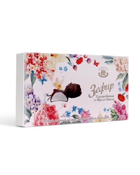 Нежный, воздушный зефир с тонким ароматом ванили буквально тает во рту, окутывая лёгкой сливочной сладостью. Сверху он покрыт тонким слоем шоколадной глазури, добавляющей благородную горчинку и изысканную глубину вкуса.
