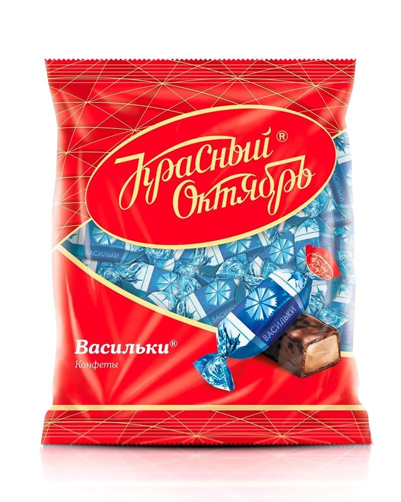 Шоколадные конфеты «Васильки» от Красный Октябрь - это изысканное сочетание нежной начинки и насыщенной шоколадной глазури. Гармоничный вкус с ореховыми и сливочными нотами создаёт мягкую текстуру и приятное послевкусие. Конфеты отличаются сбалансированной сладостью и тонким ароматом какао.