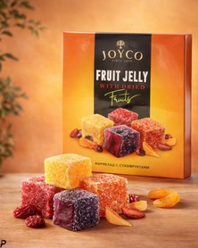 JOYCO Мармелад с сухофруктами - прекрасный выбор для личного удовольствия и в качестве небольшого подарка. Это гармоничное сочетание классического мармелада и фруктовых кусочков превращает каждую конфету в маленькое наслаждение и делает продукт достойным местом на вашем столе.