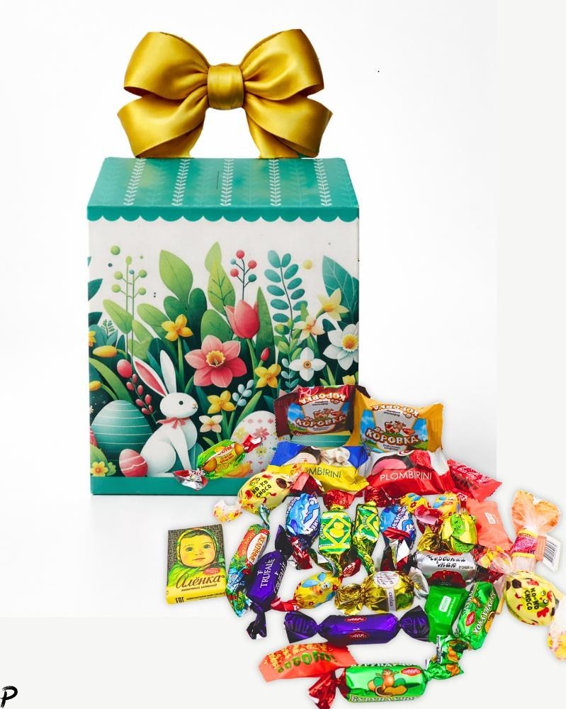 Праздничный микс шоколадных конфет, желейных сладостей, батончиков и карамели - отличный подарок к Пасхе.