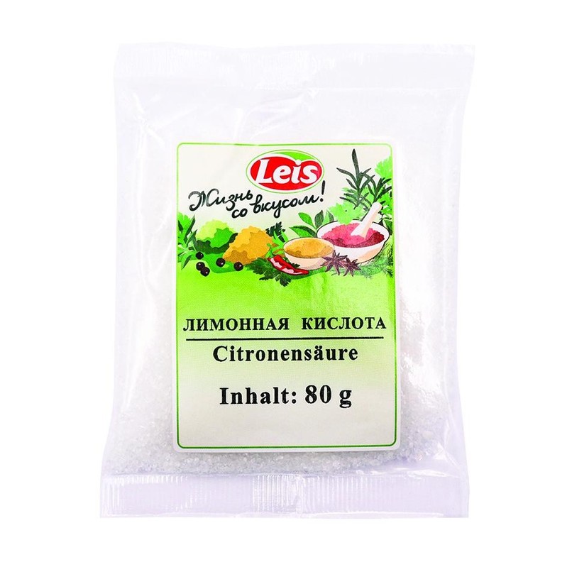 Лимонная кислота LEIS (E330) - универсальная пищевая добавка для приготовления напитков, выпечки и домашних заготовок. Подходит также для бытового использования.