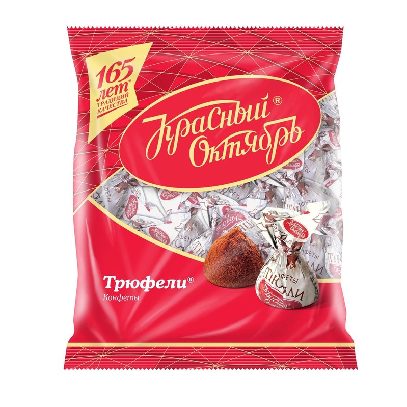 Трюфель: самая роскошная из всех шоколадных конфет. Трюфели - это изысканные конфеты конусной формы. Конфеты Трюфели от фабрики Красный Октябрь ароматные шоколадные купола, усыпанные невесомой какао-пудрой. Застывший шоколадный крем с плотной консистенцией.