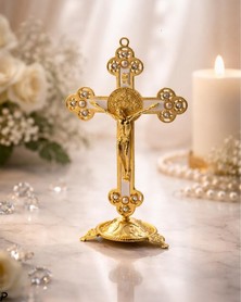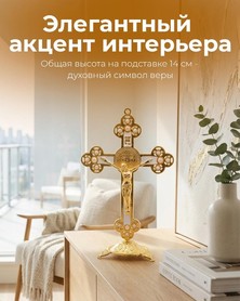 Эксклюзивный крест «Распятие Иисуса Христа» из высококачественного металла с декоративными бусинами. Общая высота на подставке 14 см - духовный символ веры и элегантный акцент интерьера.