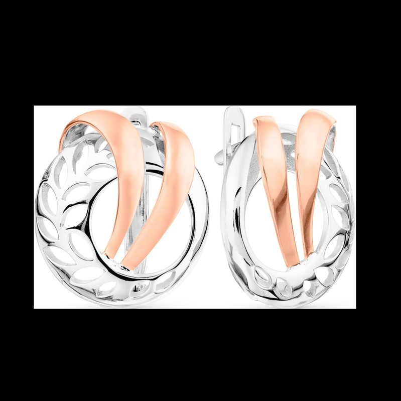 Уникальные серьги из белого и красного золота 585 пробы, высотой ≈ 16 мм.