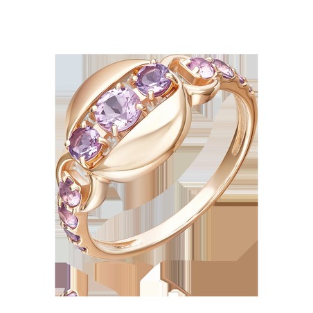 Женское кольцо с аметистами из русского красного золота 585 пробы, диаметр центральной части кольца ≈ 10 мм