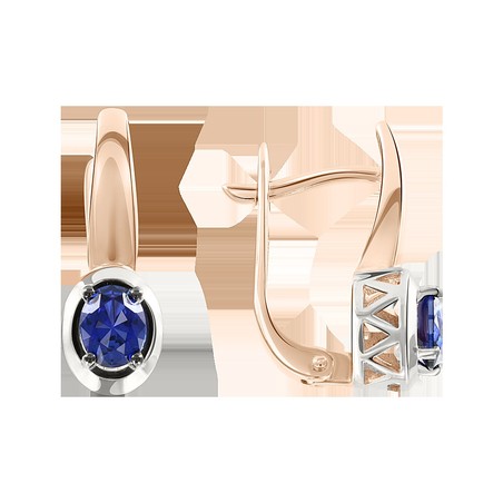 Элегантные серьги из русского красного золота 585 пробы, с вставками по гидротермальному сапфиру - 0,750 ct. - размером ≈ 5x4 мм, английский замок, высота ≈ 18 мм.