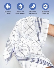 Практичный набор из 10 кухонных полотенец размером 45 х 62 см - идеальный помощник для кухни и уборки. Классический белый цвет с синей клеткой подходит под любой интерьер, а удобный размер позволяет использовать полотенца как для вытирания посуды, так и для сервировки.