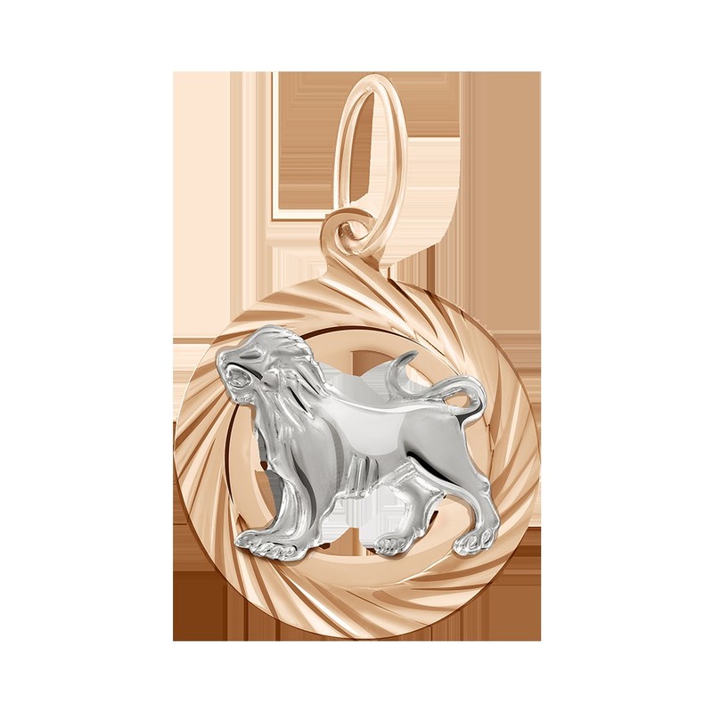Замечательная подвеска "Знак зодиака Лев", 23.07 - 23.08, из красного и белого золота 585 пробы, диаметр ≈ 16 мм, высота ≈ 26 мм.